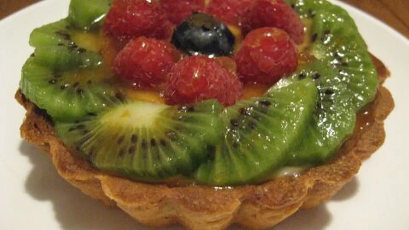 - ضعي قطع الكيك المحشو بالمربى حول الكيوي.