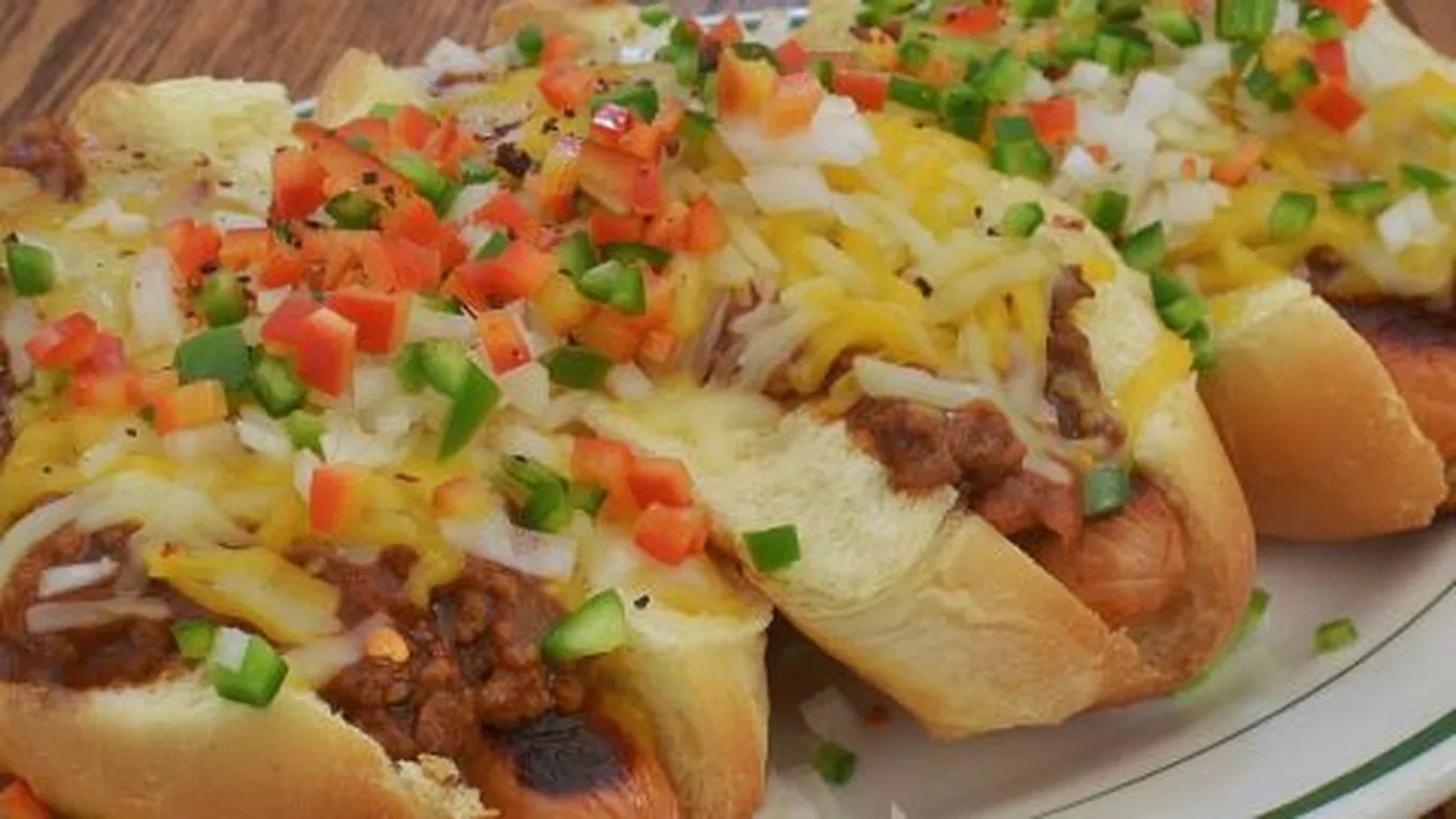 - توضع قطعة من الهوت دوج، وتوضع فوقه الصلصة، والبصل والزيتون، ومخلّل الخيار، وتُرصّ السندويشات في صينية الفرن، ويرشّ فوقها الجبن المبروش،