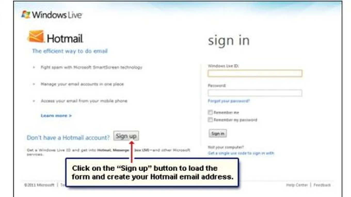 يمكن إنشاء حساب جديد على موقع هوتميل (Hotmail) من خلال اتباع الخطوات الآتية:[1]