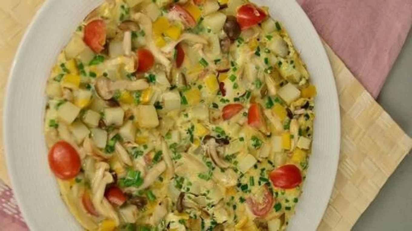 - ضعي البيض المخفوق في المقلاة، وقلبيها بشكل دائري حتى ينتشر بطريقة متساوية في المقلاة مع الفطر.