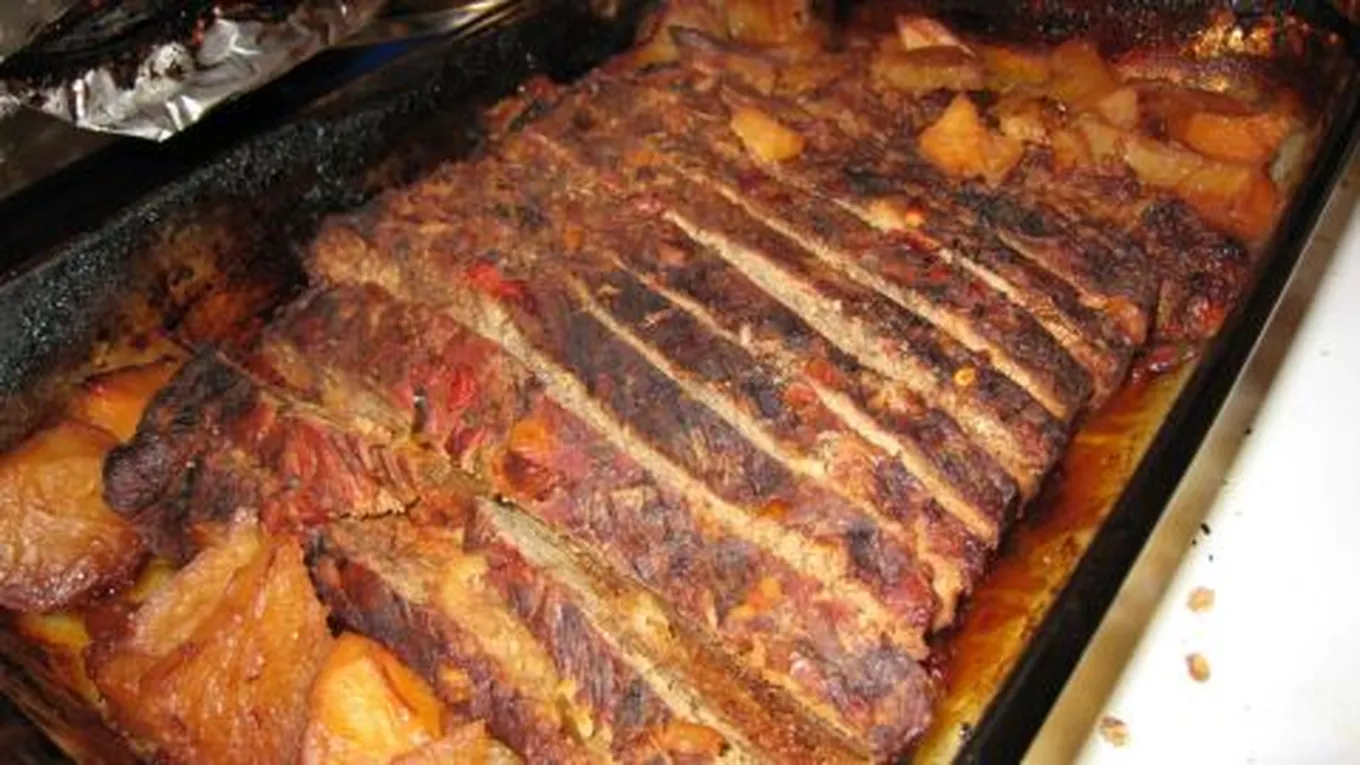 - نضعه في الصينية، ثم ندخلها الفرن مدة ساعتين تقريباً على نار متوسطة إلى أن ينضج اللحم مع مراقبته باستمرار.