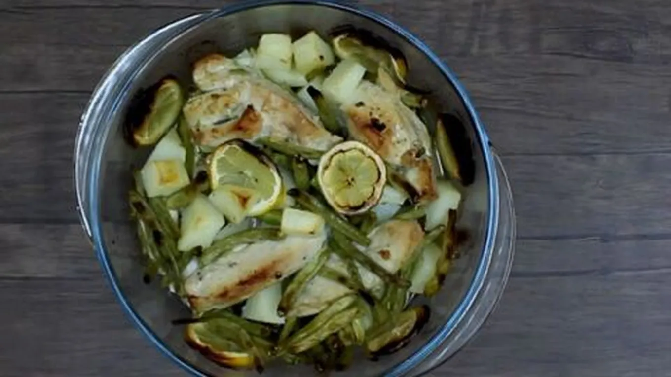 صينية دجاج بالبطاطس مدّة التحضير 15 دقيقة مدّة الطهي 60 دقيقة عدد الأشخاص 4المكوّناتدجاجة كاملة مقطّعة إلى قطع كبيرة.بشر قشر حبتان من الليمون.ربع كوب من