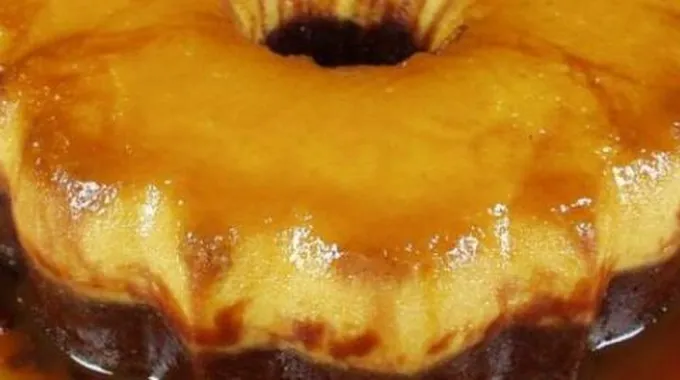 - نضيف الخليط السابق إلى قدر أو صينية مناسبة الحجم حتى يصل سمك الكيكة إلى سمك الكريم كراميل الجاهز.