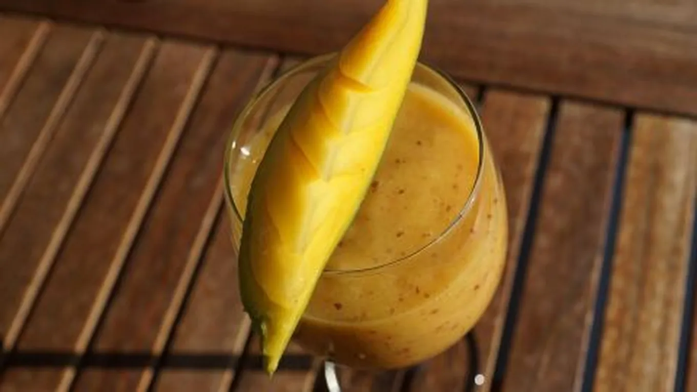 - فرم شرائح المانجو على شكل قطع صغيرة، ثم وضعها في الخلاّط الكهربائي، وإضافة الآيس كريم ولبن الزبادي إليها والخلط جيدًا حتى تتجانس المكوّنات، ثم سكب العصير في كوب التقديم، وتقديمه فورًا.