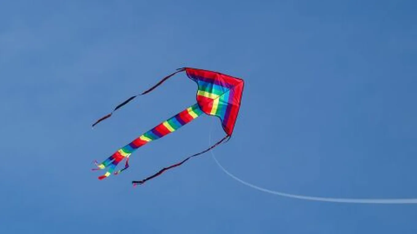 - أخيراً نحضر ربطة خيطان النايلون و نثبتها بالطائرة الورقية.
