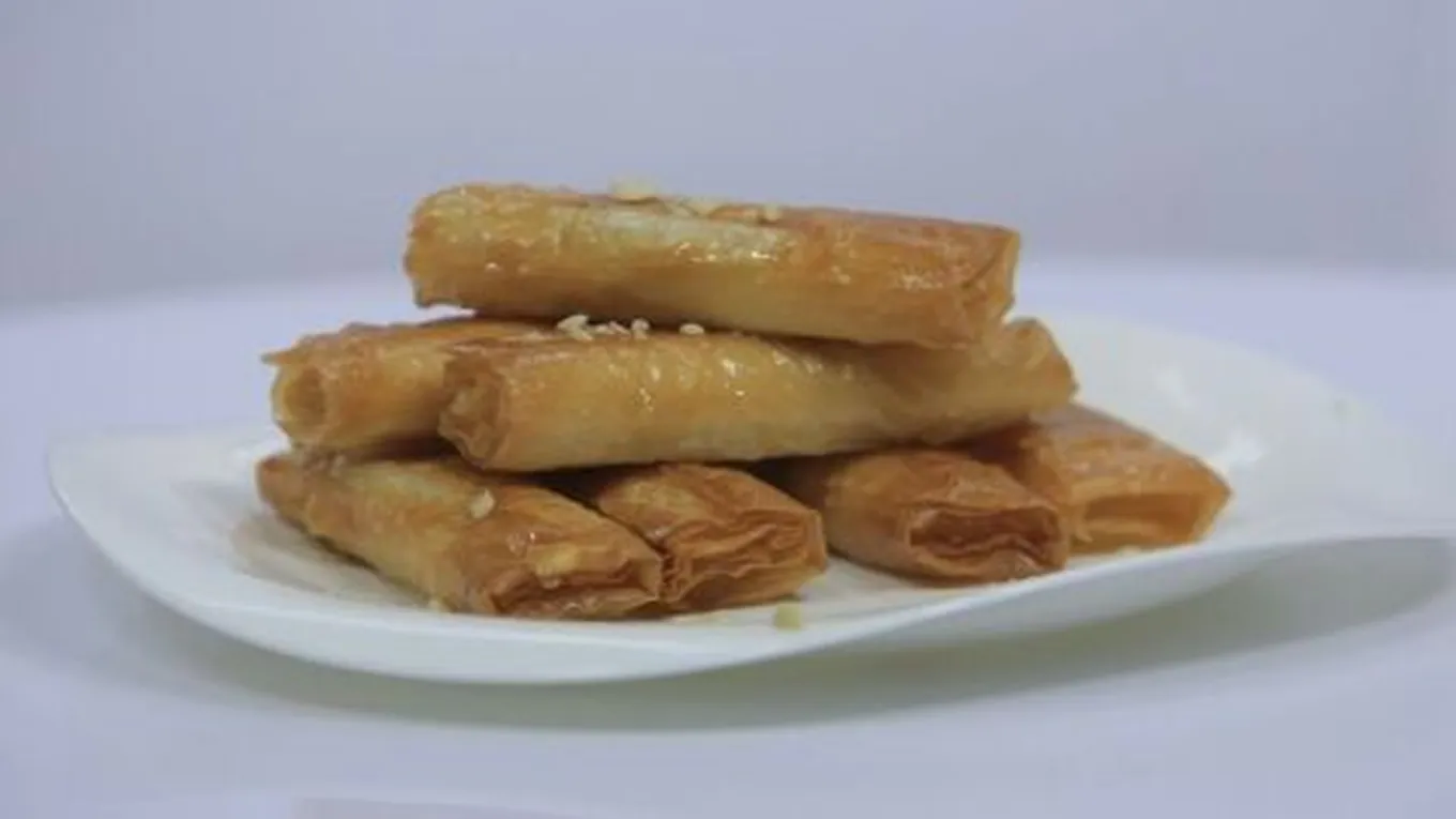 - ضعي القليل من القشطة السائلة في وسط العجينة، ثم اثني طرف العجينة على الحشو، ولفيها بشكلٍ مرتب لتصبح لفافة صغيرة، ثم ثبتي أطرافها بالقليل من خليط اللصق، ثم شكلي الرقائق الباقية بنفس الشكل والحجم.