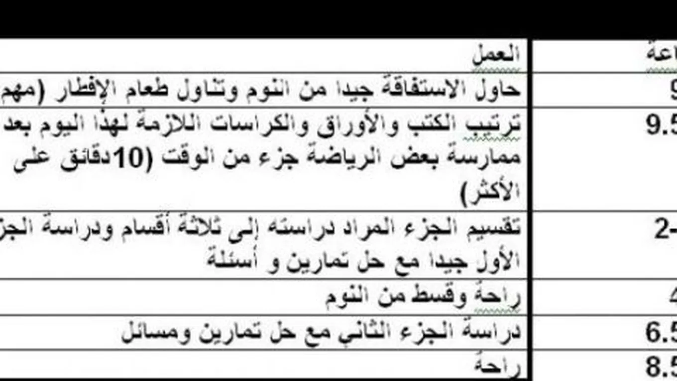 - عدم تجاوز مذاكرة المادة الواحدة عن ساعة، وذلك باستثناء حالات الامتحانات الفصليّة.