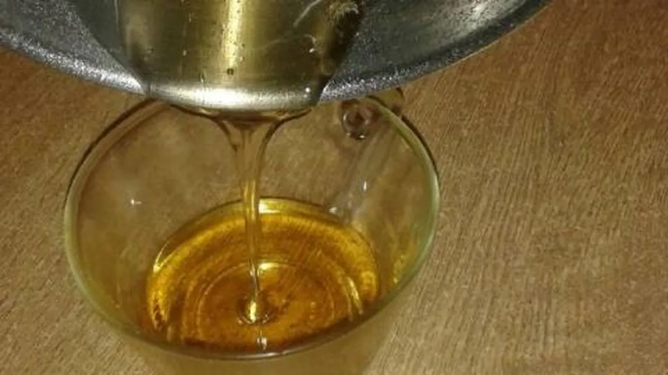 - نسكب الشيرة في حاوية، ونتركه جانباً حتى يبرد.