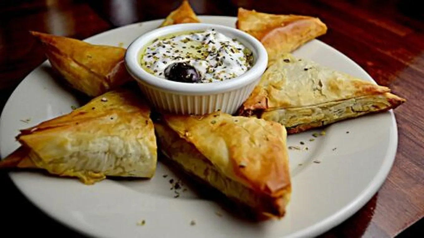 - تقطيع الرقائق إلى أربع شرائح طولية، ووضع ملعقة صغيرة من حشوة الجبنة في طرف كل رقاقة، وتشكيلها إلى مثلثاث.