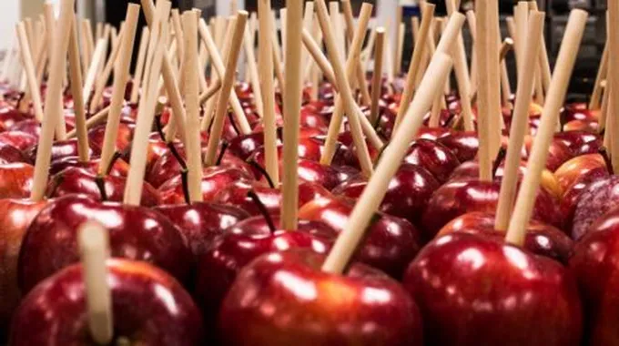 - نغمّس كلّ حبة من حبات التفاح بالمزيج الأحمر، ونحرص على لف التفاح بكل الاتجاهات في الخليط إلى أن تتغلّف حبة التفاح بأكملها بالخليط.