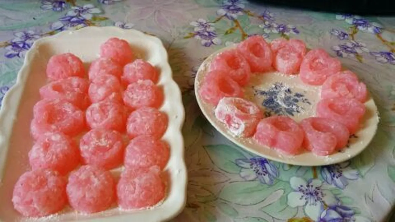 - إخراج الحلقوم من الثلاجة، ثمّ تقطيعه إلى مربعات صغيرة الحجم، وبعدها تزيينه بالسكر الناعم، والكمية المتبقية من النشا، ويقدم.