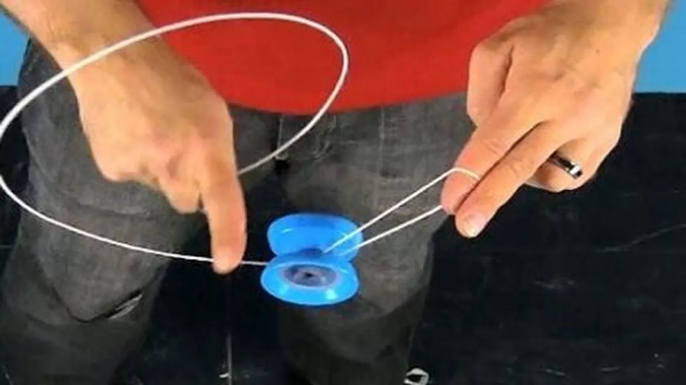 - تنتقل القوة من يد اللاعب إلى الخيط، لتصل عبره إلى المحور والحلقتين فتتحرك الحلقتان بعيداً عن يد اللاعب، ويفتح الخيط، وتصل الحلقتان إلى أقصى مدى وهو طول الخيط.