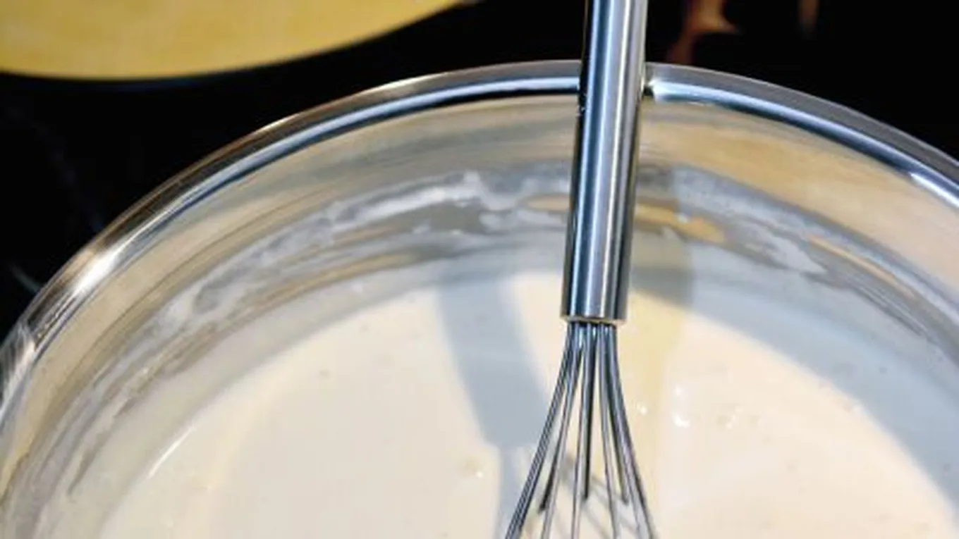 - إضافة الحليب إلى الدقيق بالتدريج مع التقليب إلى أن نحصل على صلصة سميكة القوام.