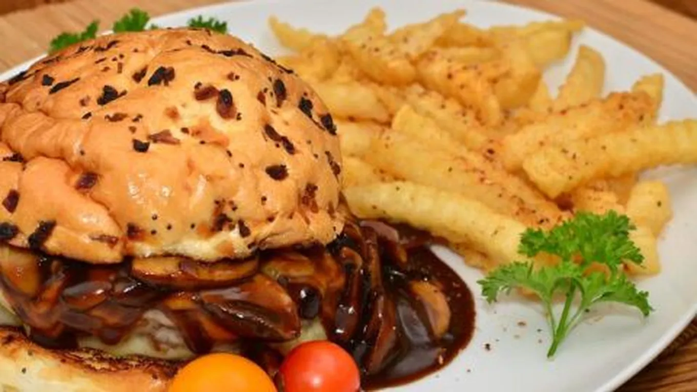 - إضافة البرغر لصوص المشروم حتى يتشربها قبل تقديمه.
