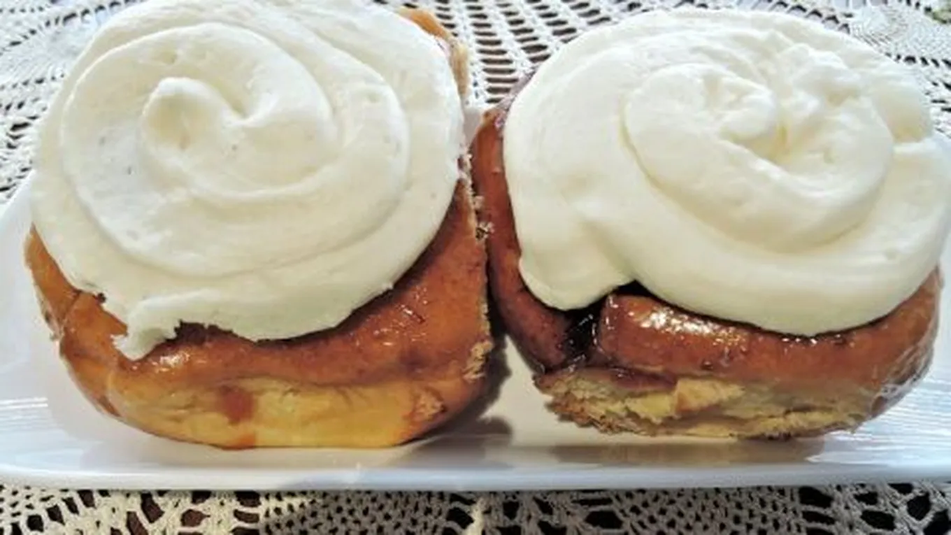 - وضع كيك القرفة على طبق تقديم و توزيع صلصة الجبن.