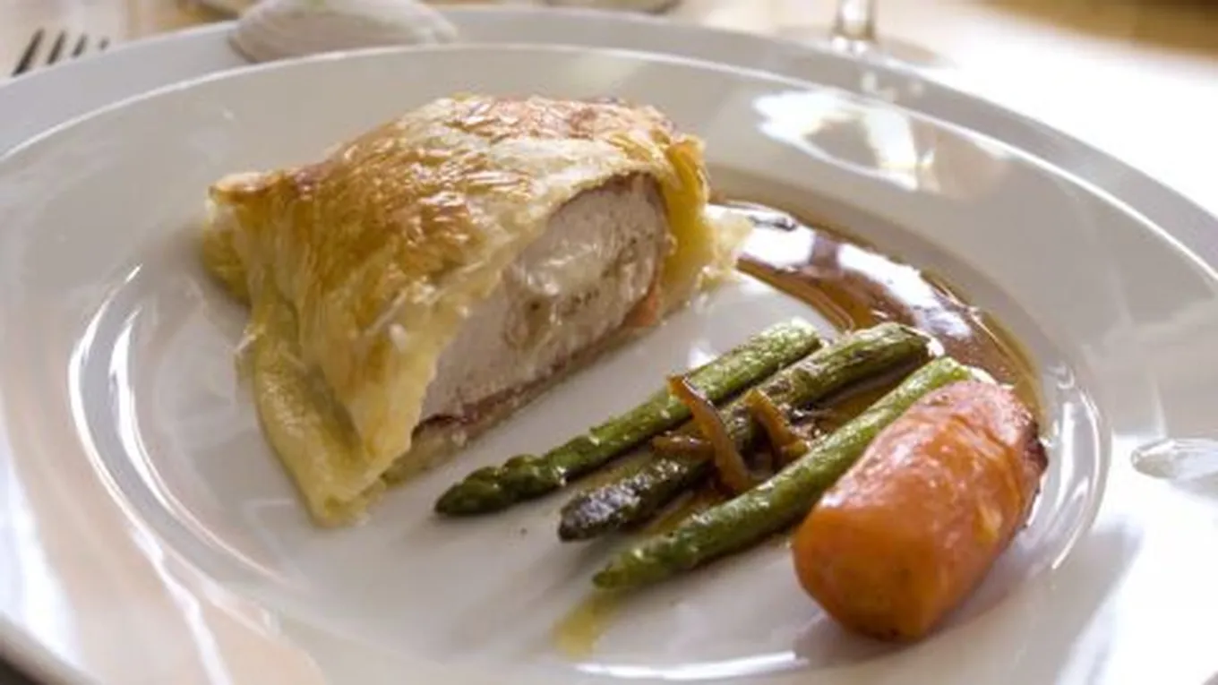 - صُفّي قطع الكوردون بلو بطبق التّقديم وقدّميها بجانب سلطة الخضروات المسلوقة مع المايونيز.