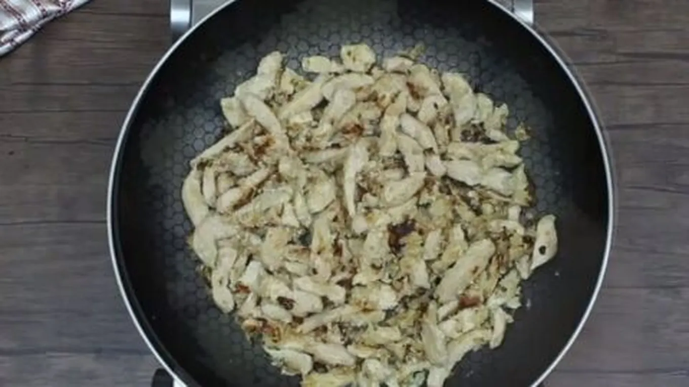 - نرفع قطع الدجاج من الصلصة ثمّ نضعها في وعاءٍ ثانٍ.