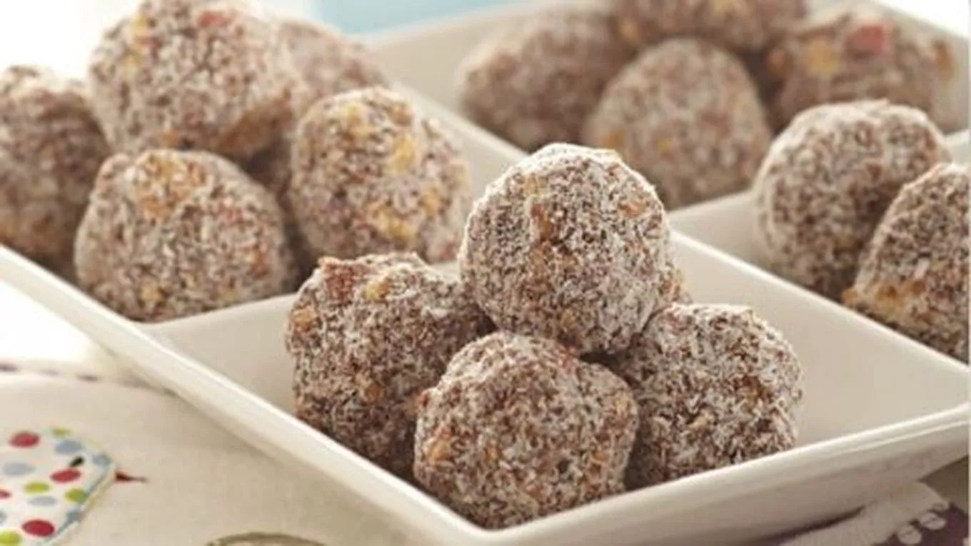 - تُشكل عجينة البسكويت والحليب المكثف إلى كرات صغيرة، بحيث لا يزيد حجم الكرة الواحدة عن حجم كرة الغولف.