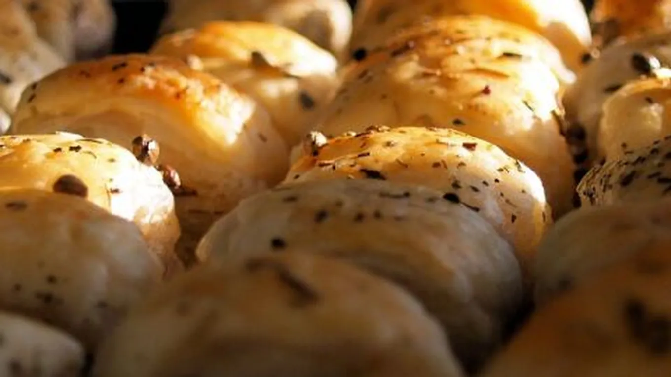 - نرش الملح، والسمسم، على العجينة من الجهتين.