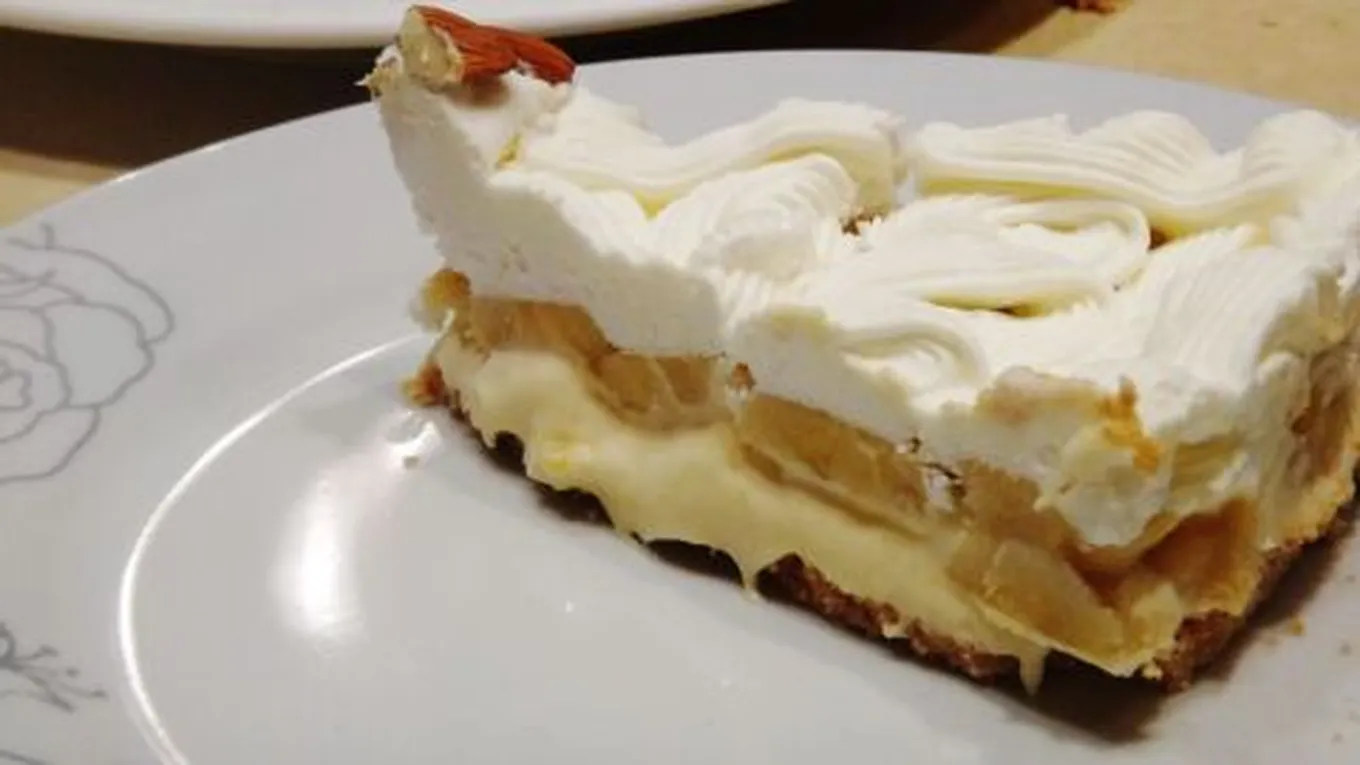 - أُسكب خليط الموز والكريمة على البسكويت في القالب.