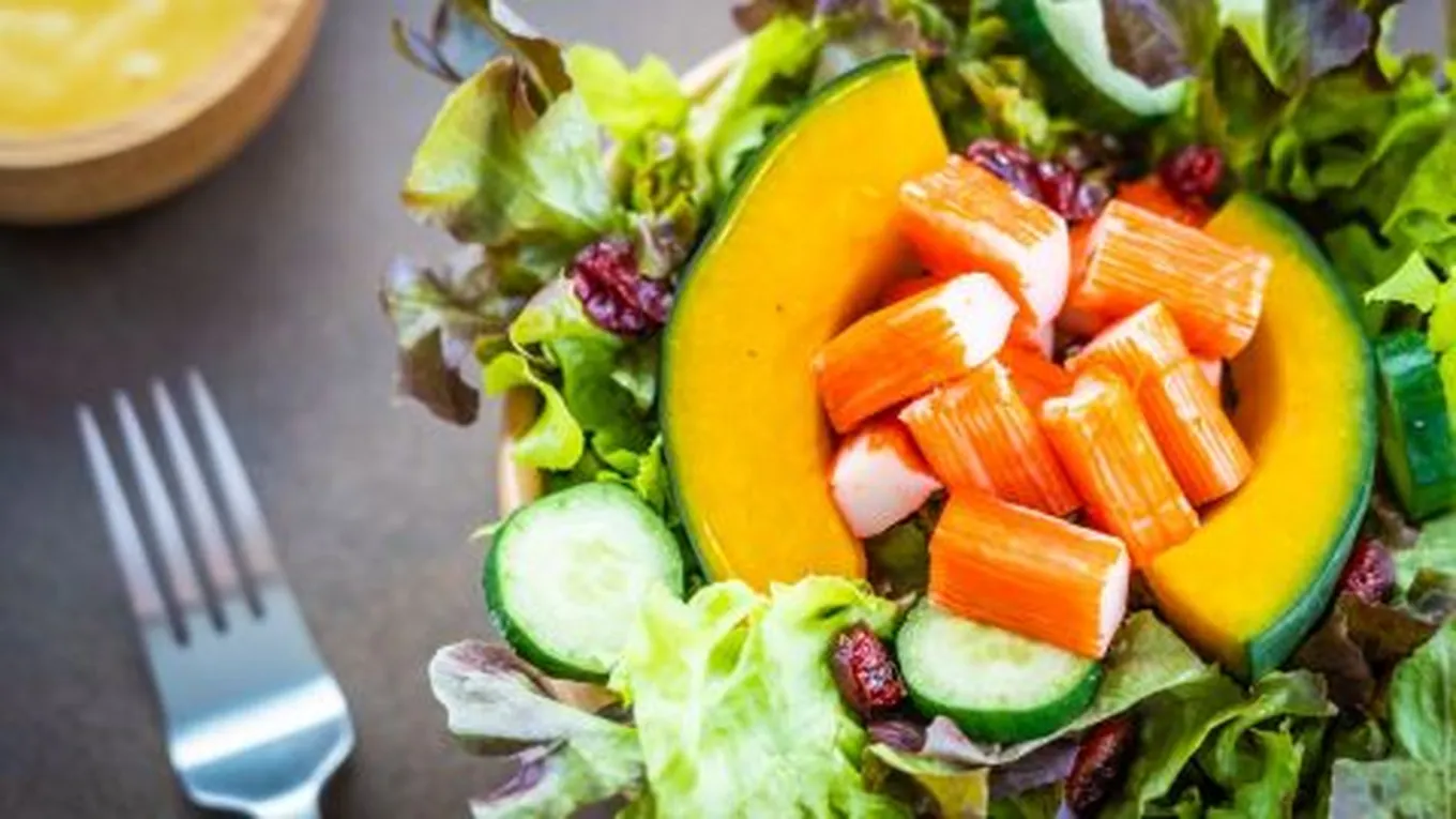 - مئتا غرامٍ من أصابع السلطعون المسلوق والمُقطع إلى شرائح رفيعة جداً.
