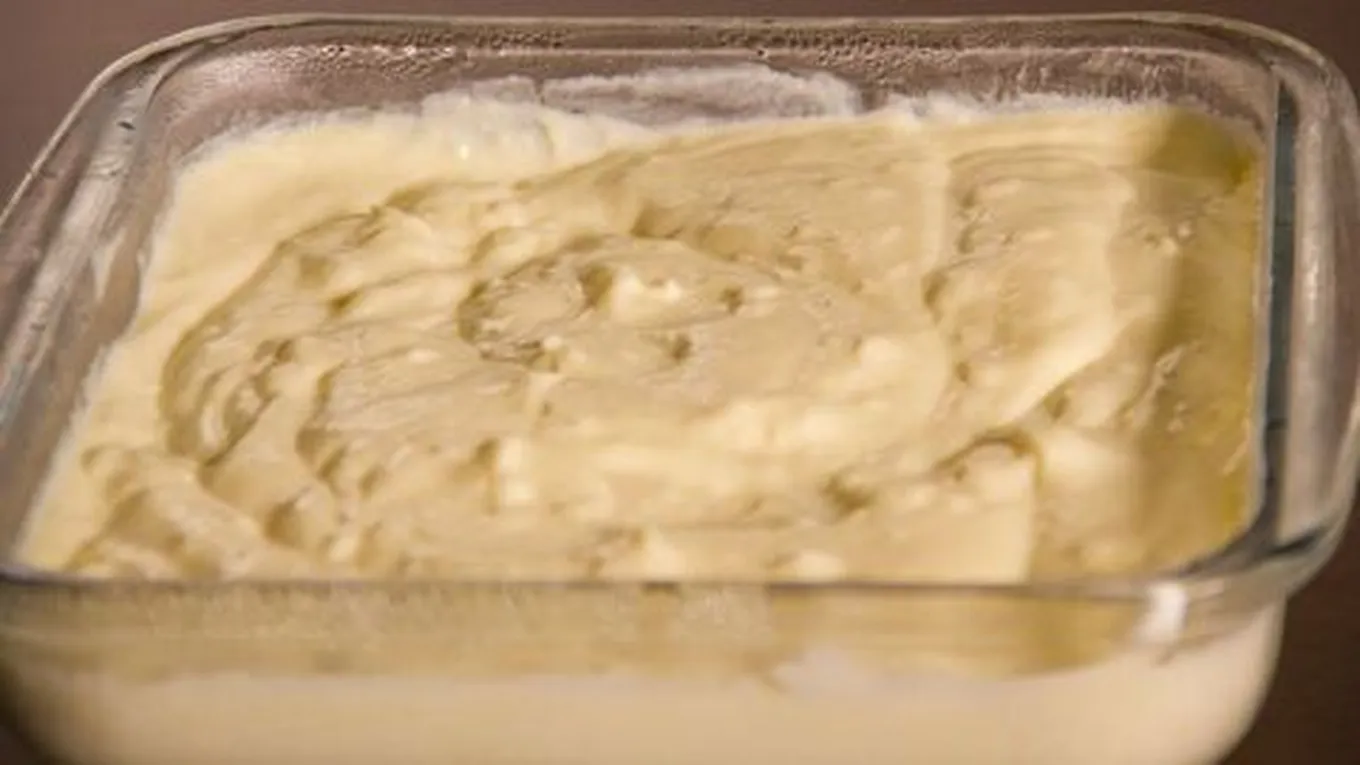 - عندما يصبح الخليط متماسكاً، نرفعه عن النّار، ونسكب القشطة في وعاء، ونتركها حتى تبرد.