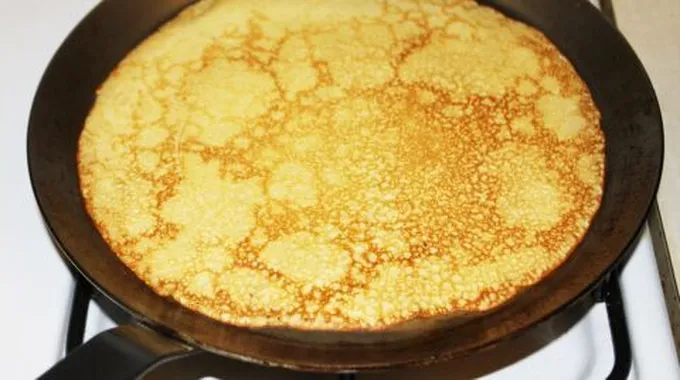 - نضع مقدار مغرفة من خليط الكريب في المقلاة، ثمّ نقلّبها حتّى تتحمر.