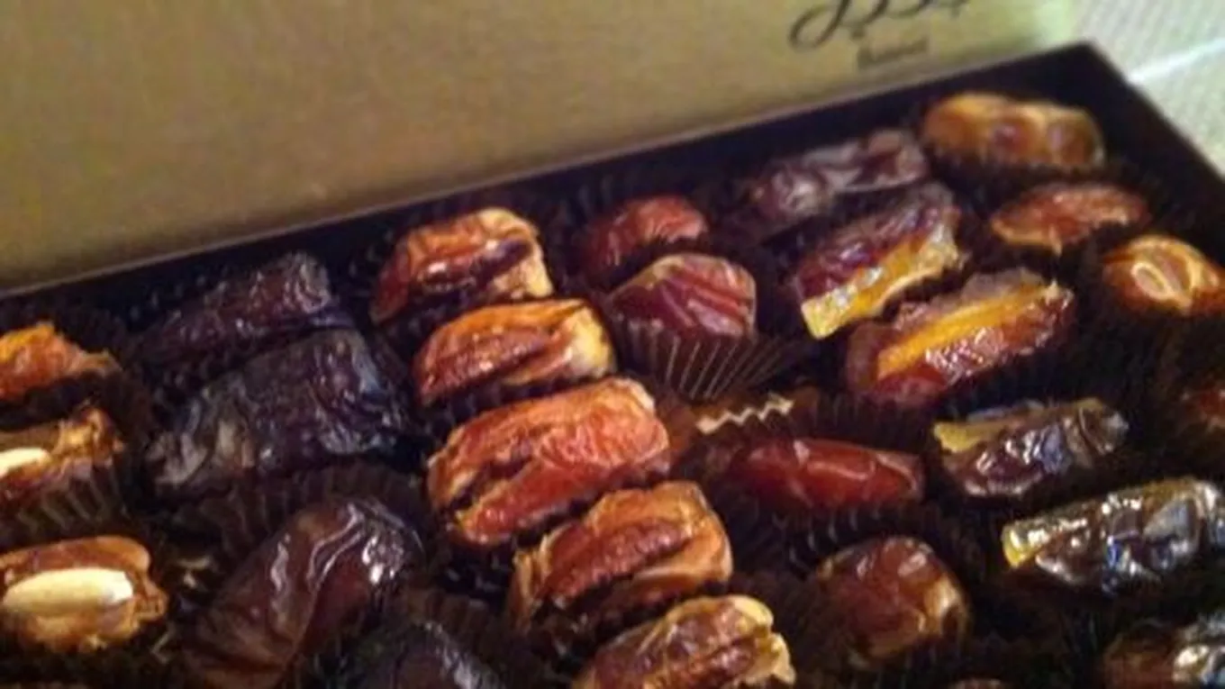 تمر محشو باللوز ومغطى بالشوكولاتة