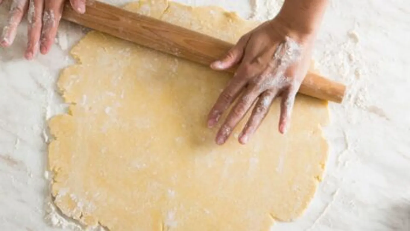 - ضعي عود خشبي على حافّة العجينة، ثمّ لفّيها على العود كالأسطوانة.