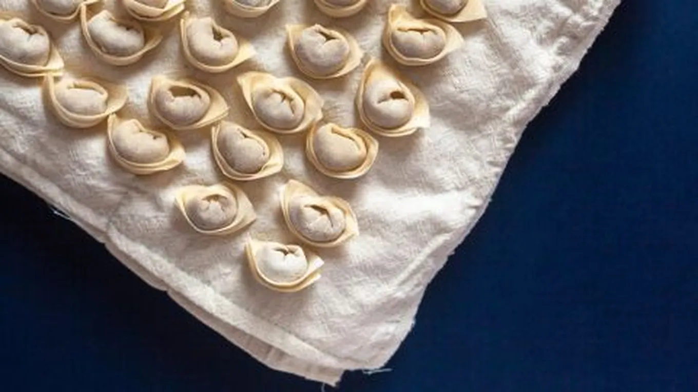 - وضع ملعقتين صغيرتين من حشو اللحم في منتصف كلّ مربع، وإغلاق الزلابية بعد جمع الأطراف معاً والضغط عليها حتّى تُصبح مثل شكل الحزمة، ثمّ تُنقل إلى طبق بعد رشّه بالدقيق.