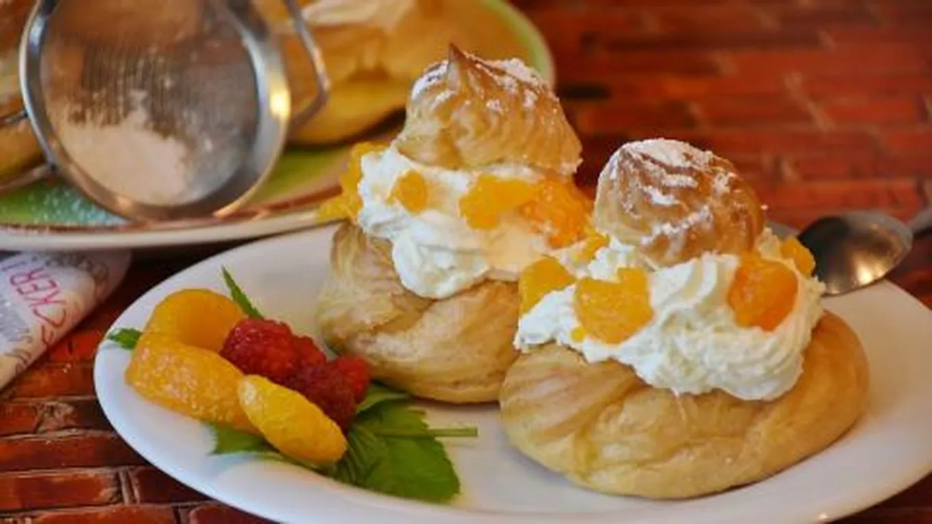 - نضع كريمة الخفق في كيس الحلويّات، ونزيّن بها قطع حلى الشو، ثمّ نرشها بالسكر الناعم.
