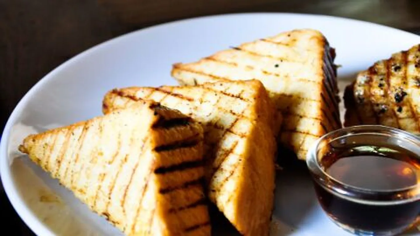 - إخراج صينية التوست من الفرن، ونقل شرائح التوست المخبوزة إلى أطباق مناسبة للتقديم، وتقديمها مباشرة مع المابل سيرب.