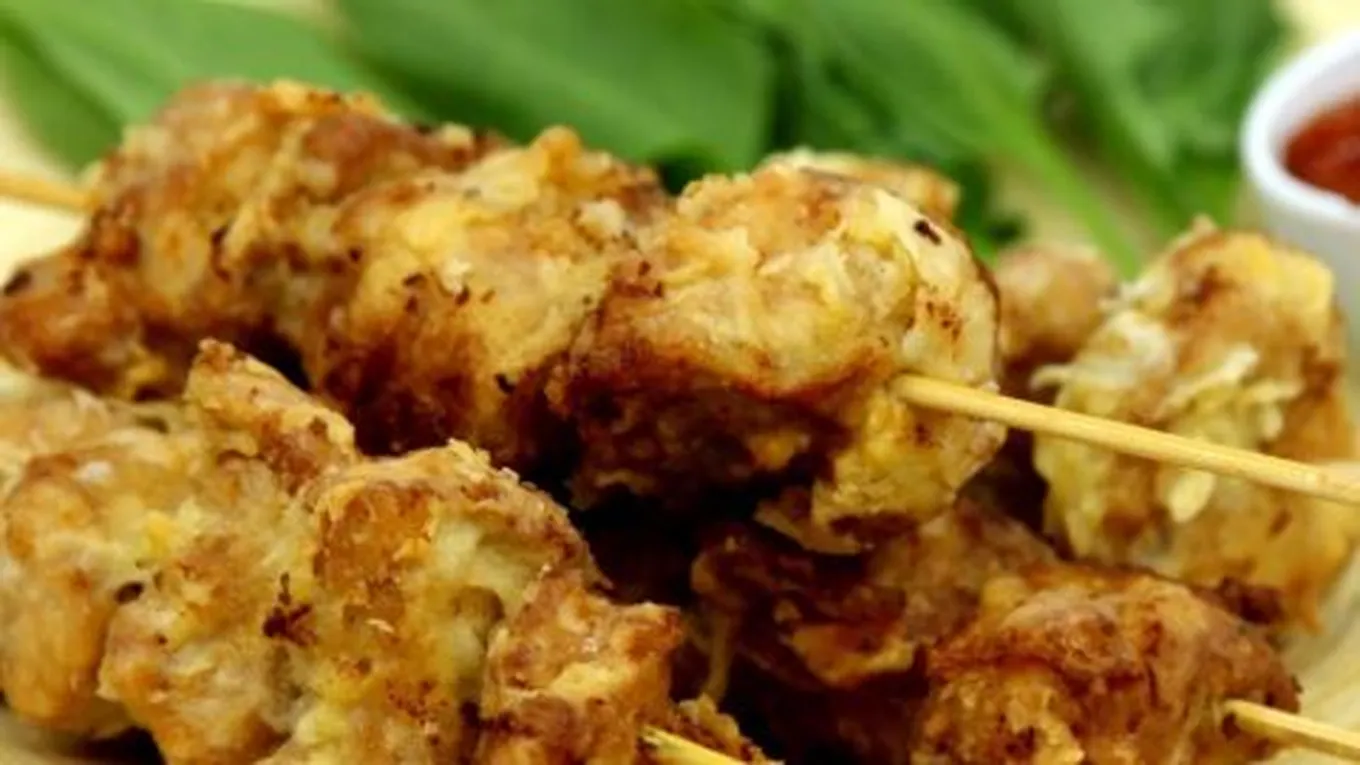 - اغرسي قطع الدجاج في أسياخ خشبية، ثم اقليها في الزيت الحار.