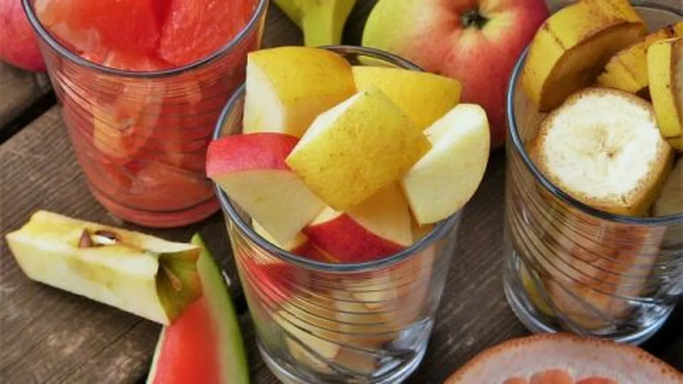 - حبة من كّل من: المانجو، والدراق، والتفاح المقطع.