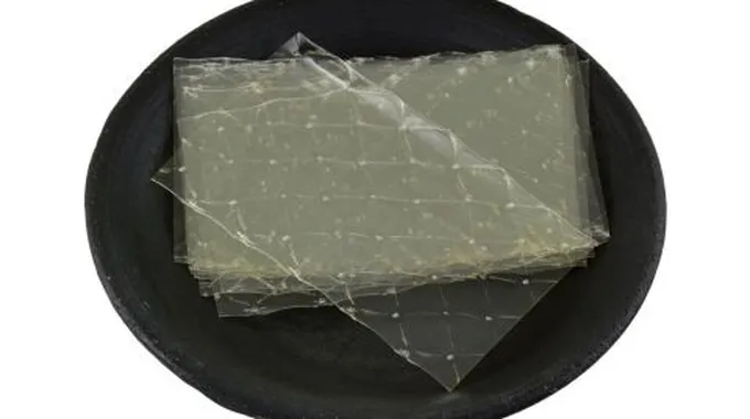 - الجيلاتين الورق: وهي المادة التي يتم استخدامها في عمل الأطباق المالحة والحلوة، وعند استخدام هذه المادة يجب مراعاة الدقة في الكميات، حيث إن 20غم تعادل 3.5 ورقات من الجيلاتين، وهذه الكمية كافية لعمل كأسين من السائل.