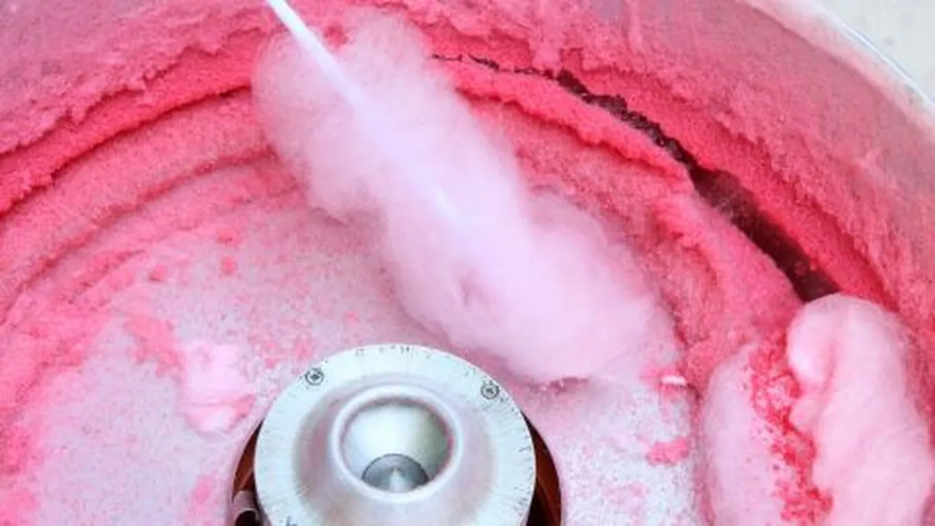 - نضع خليط السكر والصبغة داخل ماكينة غزل البنات بعد أن يبرد تماماً.