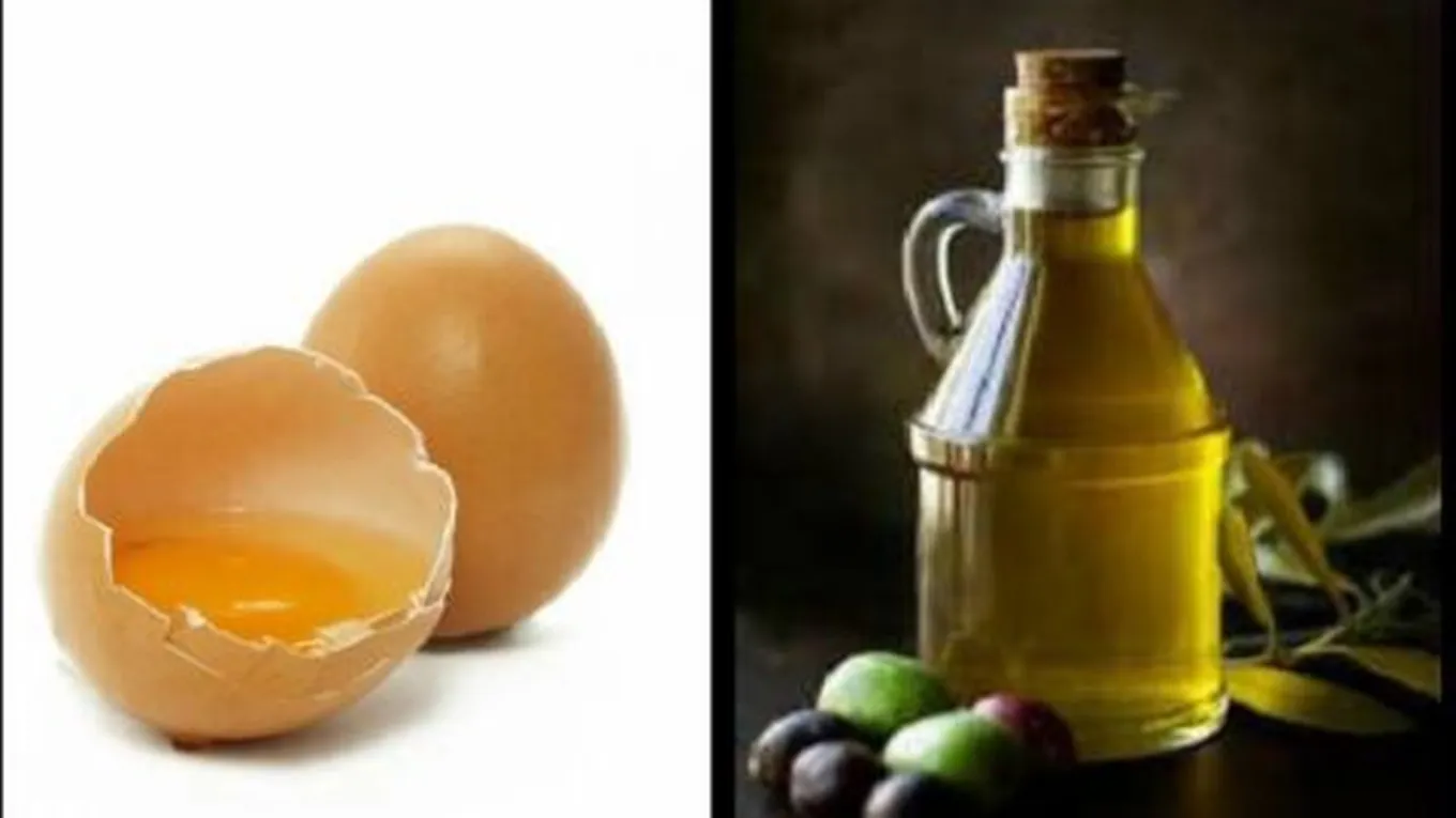 نمزج بيضتين مع ثلاث ملاعق كبيرة من زيت الزيتون في وعاء، ثمّ نضع المزيج على الشعر بحيث يصل إلى جميع أجزائه، ونتركه لمدّة ساعة، ونكرّر هذه العملية ثلاث مرّات أسبوعياً.