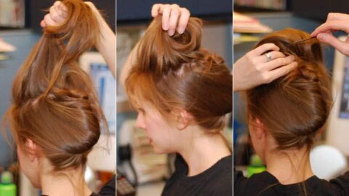- ابدئي برفع خصل الشعر على الحشوة بتناسق، ومن ثمّ ثبتيها جيداً بالبنس المعدنية.