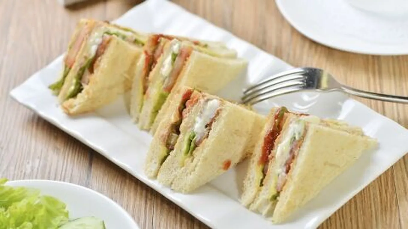 - نضع شريحتي الجامبون داخل الخبز، ثمّ نضيف إليه الخيّار، والطماطم، ثمّ ننكه بالملح.