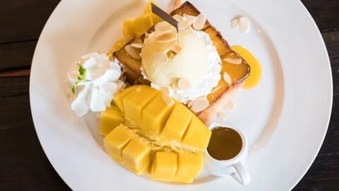 - خفق الحليب المكثف المحلى ومسحوق حليب جوز الهند، ثمّ وضع الكريمة والمانجو، وتحريك المكوّنات.