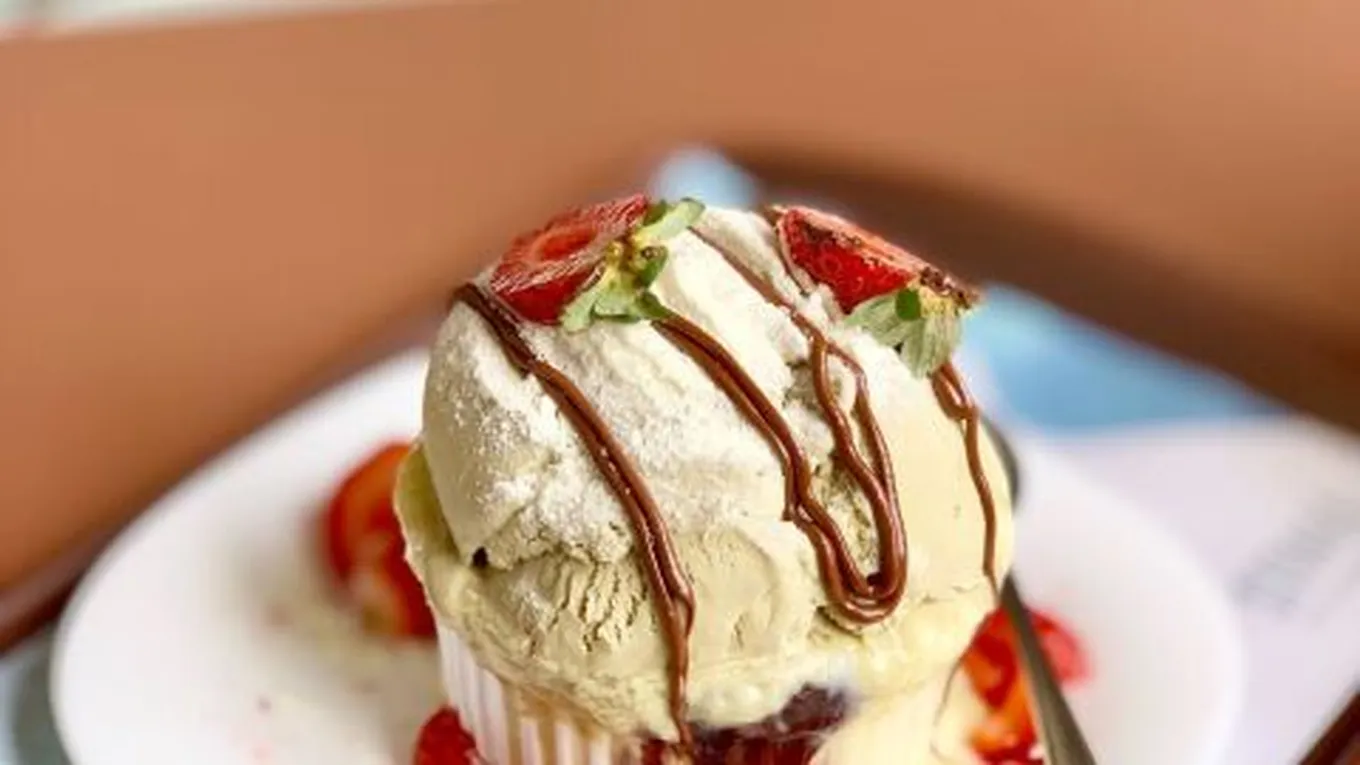 - تقديم الآيس كريم مع صلصة الشوكولاتة وتزيينه بالجوز المفروم.