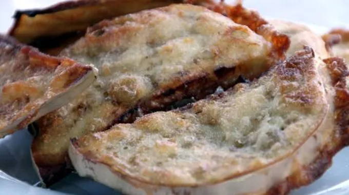 - نغسل الباذنجان من الملح ونعصره قليلاً.