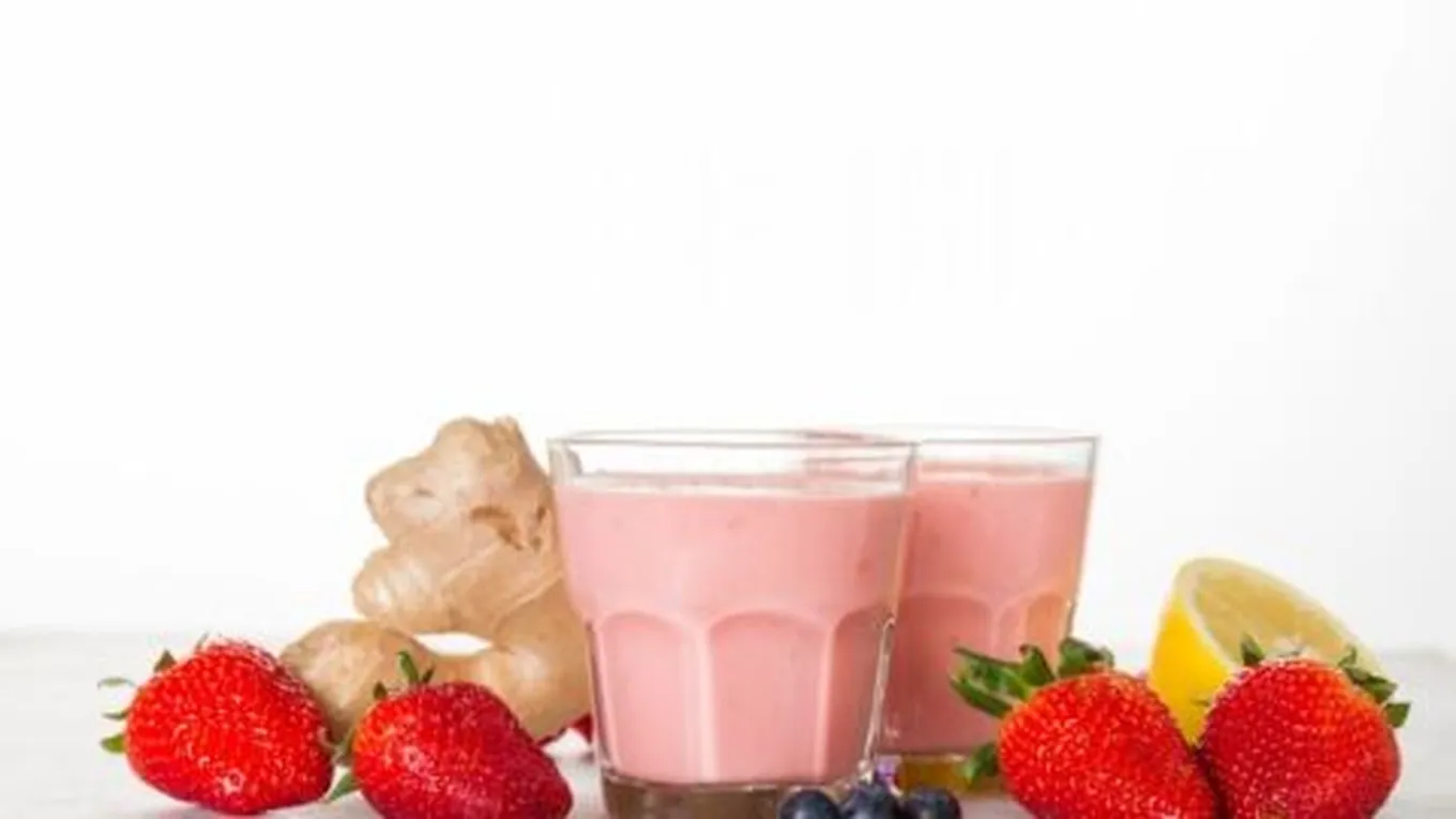 - نضع المكوّنات في الخلاط الكهربائي، ونخلطها حتّى تُطحن الفراولة المجمّدة بشكل جيد.