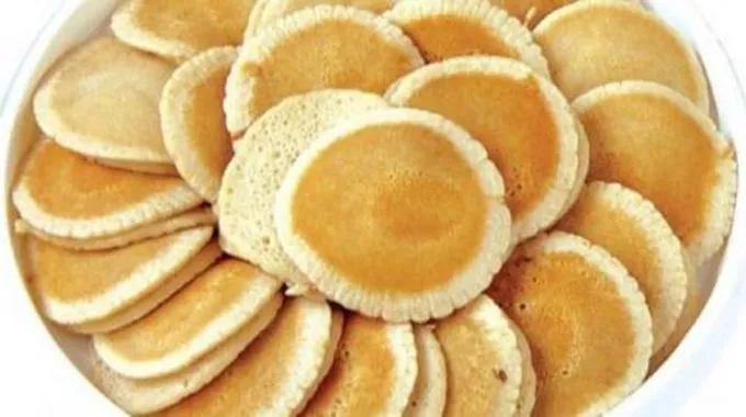 - نترك المزيج في المقلاة حتى تظهر الفقاعات على وجه القطعة، ثم نقلب القطعة إلى الوجه الثاني حتى يتحمّر، ونزيل العجينة من المقلاة، ونتركها جانباً حتى تبرد، ونكرّر هذه الخطوة حتى انتهاء كميّة المزيج.