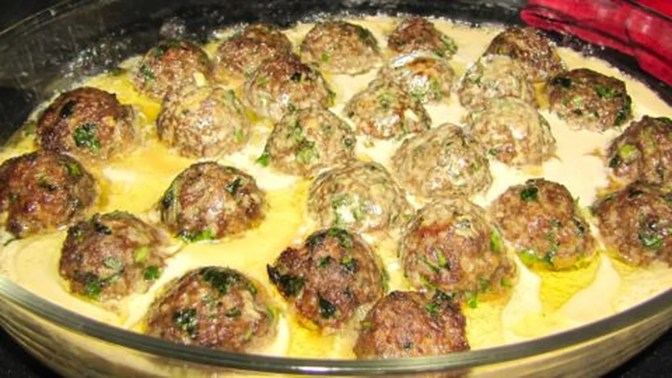- نوزّع الصلصة على كرات الكفتة في صينية الفرن.