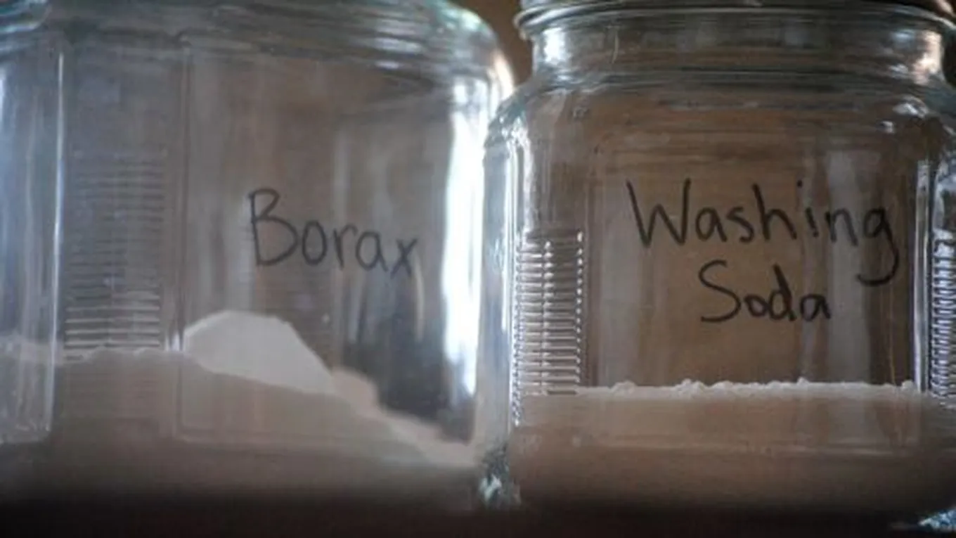 - وضع مسحوق الصابون في وعاء كبير، ويُضاف إليه مقدار 660غم من صودا الغسيل ومقدار 818غم من البوراكس بالإضافة إلى مقدار 30 قطرة من الزيوت العطرية كزيت اللافندر أو زيت الليمون.