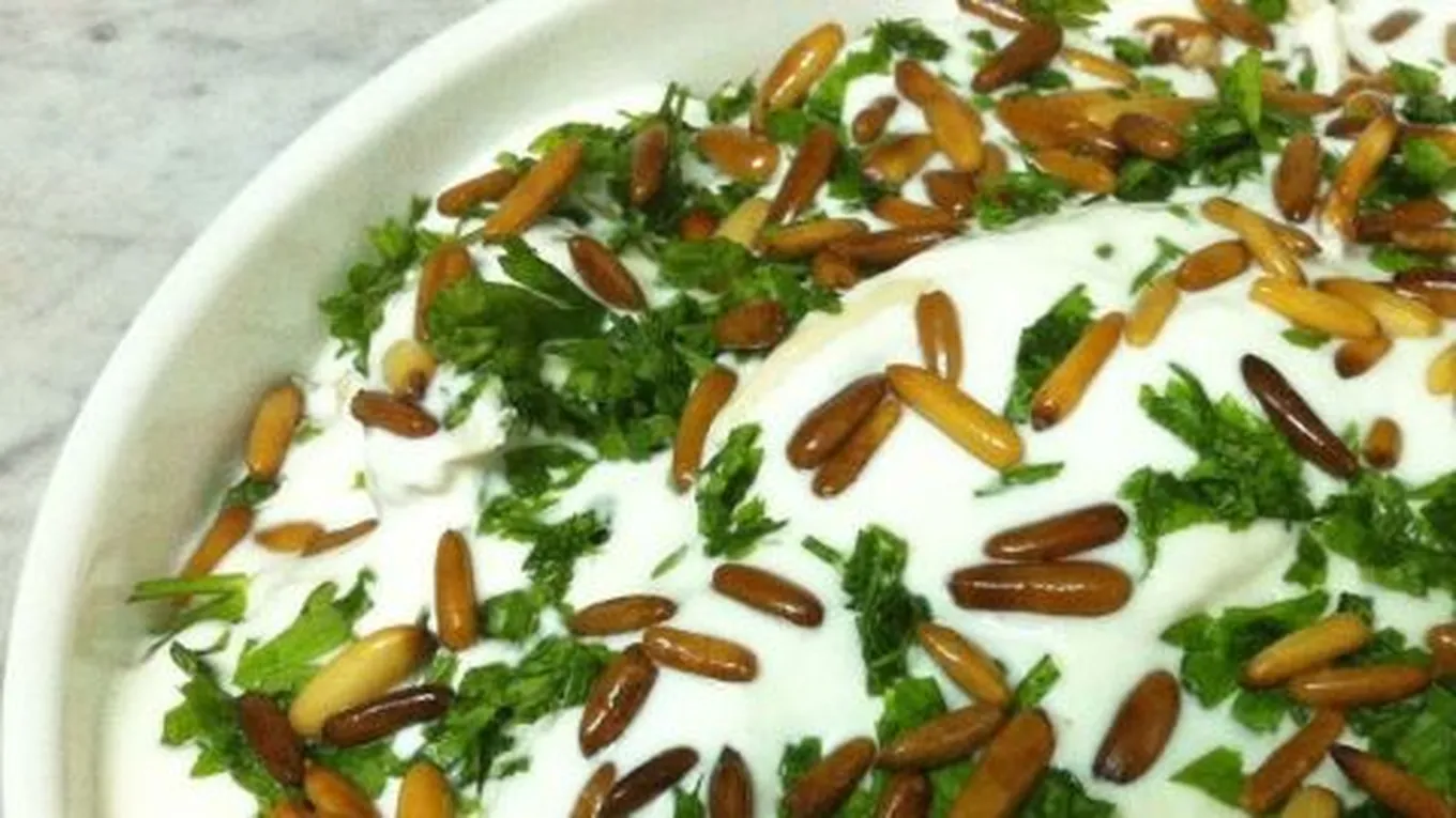 - نضع كلّاً من اللحم، والطماطم، والبصل، ودبس الرمان، والفلفل، والقرفة، والطحينية، والملح، والزبادي، والبهار، والفلفل، والصنوبر في طبق عميق، ونُقلّب المكوّنات.