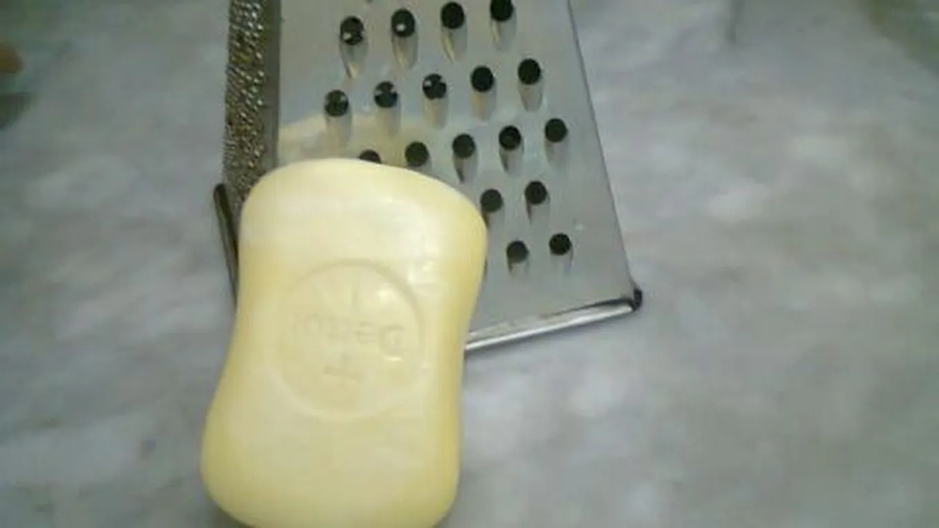 - يبشرُ الصابون الصلب بالمبشرة للحصولِ على رقاقات ناعمة من الصابون، حيثُ تُخصّص مبشرة خاصّة للصابون، وسيتمّ الحصول على أربعة أكواب من الصابون المبشور، تحفظ الكميّة في وعاء بلاستيكيّ، ويغلق جيّداً.