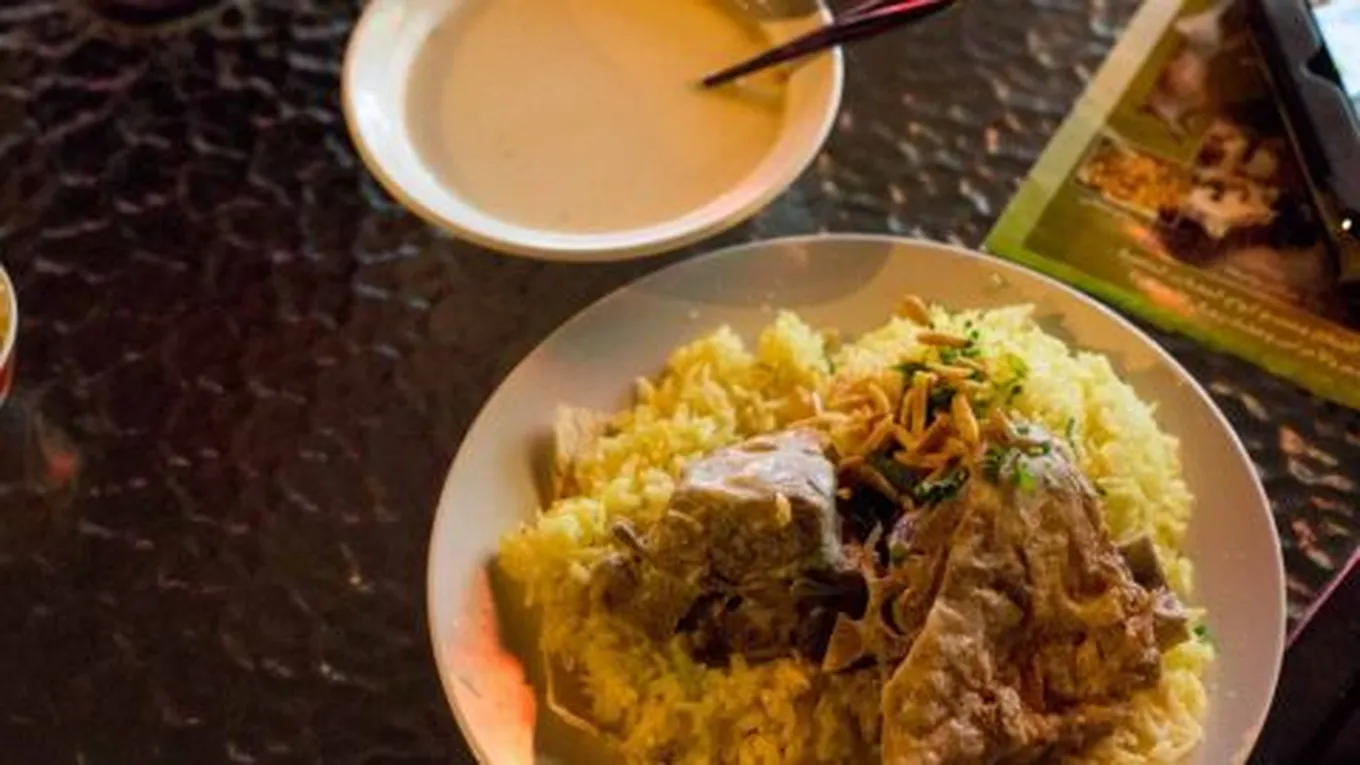 - توزّع قطع اللّحم فوق الأرز بشكلٍ متناسقٍ على أنّ يتم انتشالها من اللّبن مباشرة.