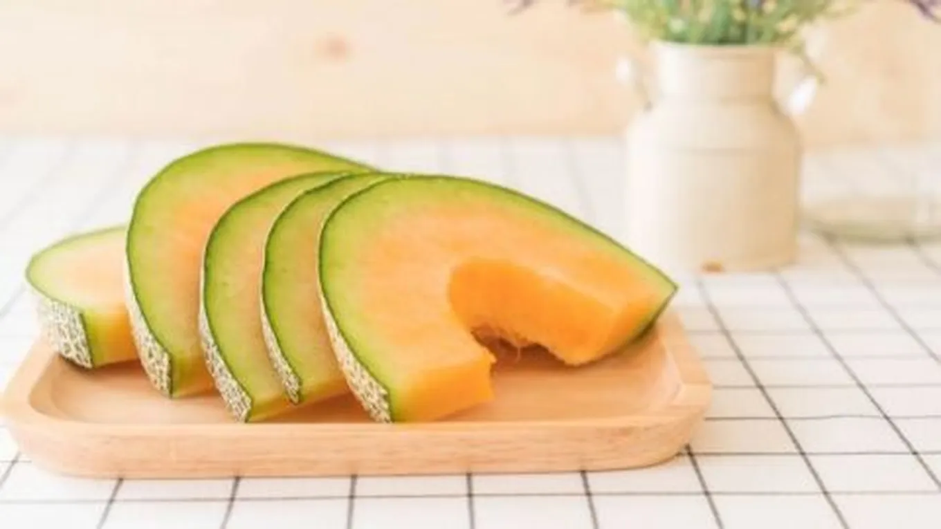 - تقديم السموذي في كأس طويلة وتزيينه بمثلث من الشمام.